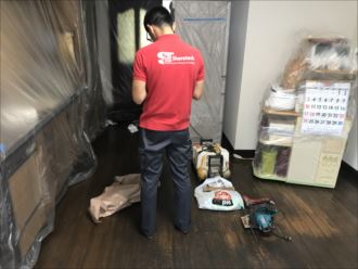 住みながらのリフォーム工事で一番のお困り事は工事中のホコリや騒音です。材料の切断や加工などではどうしても細かなホコリなどが出てしまい、生活する方にご迷惑をかけてしまいます。そのホコリの対処法としましてはマスカーというカーテン状のビニールシートが市販されているので、それで部屋中を囲うことによりホコリの飛散予防ができます。工事すると生活空間を移動したり、生活用品の移動などの負担が掛かり、いろいろ問題が出てきます。床を施工すると、日用品などはどうしても移動しないと工事できません。そういった移動もすべて弊社にお任せください。