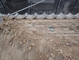 棟の瓦は、のし瓦を重ねて高く積み込まれています。剥がすことは雨漏れか、屋根葺き替えの時しかないので、普段は確認も取れなくどの様な状態かは想像するしか出来ません。瓦屋根からの雨漏れで一番多い場所はこののし瓦付近からです。
