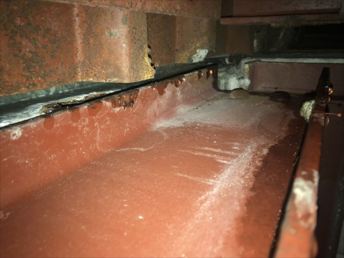 建物形状は鉄骨コンクリートの建物です。室内には事務所と言うこともあり、天井には点検口がありました。天井内部を見ることが可能で、点検口を開けてみると丁度鉄骨に雨だれがありました。明らかに外部からの侵入です。