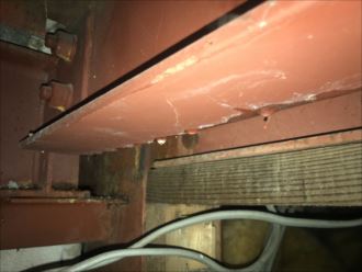 鉄骨に雨水が伝わってしまうと、資材である鉄骨には錆止めなどが塗装してあるためにどこまでも、入り込まれてしまうことがありますので、注意が必要です。よく見なくてはいけない項目になります。