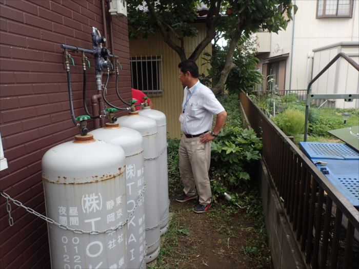 今回はアパートということもあり、お住みになっている方になるべく、ご迷惑を掛けないように配慮が必要です。共通しているライフラインなどは、アパート全体の問題になってしまうため、事前の打ち合わせが重要になります。今回外壁を外す工事に伴い、プロパンガスがあるため、打ち合わせにより連携を取ります。円滑に工事が進むためには明確な工事準備が重要になります。