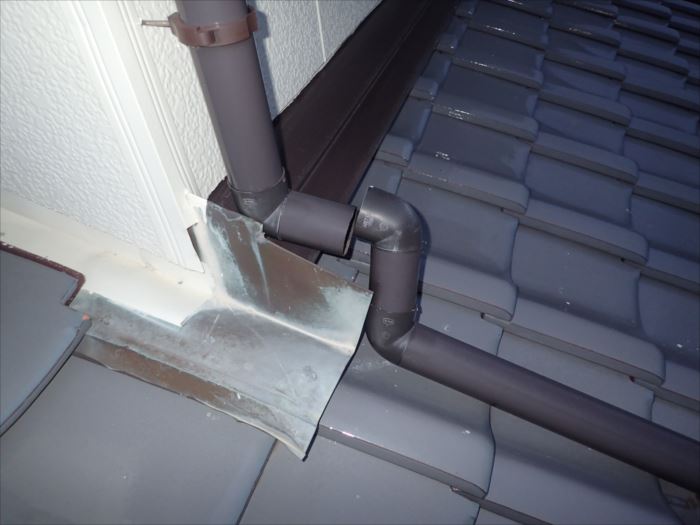 勢い良いよく雨水が流れて水の勢いで、外れてしまった雨樋もありました。瓦屋根など屋根に凹凸がある場合は、段差を回避するために雨樋も曲がりなどが多く使われているため外れや破損なども起こりやすくなります。