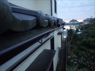 木更津市のお客様は最近の大雨により雨樋が設置してあるのに屋根の雨水がお隣の敷地に零れ落ちてしまい、雨樋の役目が果たされていないとお悩みになっていました。良く雨樋は枯れ葉や土などが貯まりやすく、詰まってしまうことが多く、初めに懸念しましたが、今回のケースはちょっと状況が違う模様です。