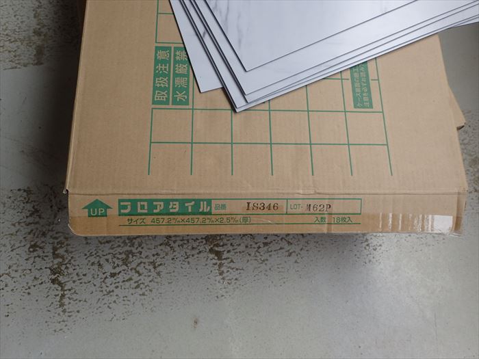 今回使用したのは、サンゲツフロアタイルIS346ビアンコという商品になります、長年のロングセラーで、古くから愛用されています。サンゲツさんだけとは限りませんが、毎年新商品が発売されます。よって人気がないと、廃盤の可能性があります。ロングセラーの物をお選びいただければ、在庫が多く万が一取り替えることが必要になっても安心です。