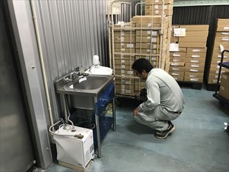袖ケ浦市の冷凍庫を持つ工場のお客様からのご相談です。冷凍庫の横に設けられた手洗い器の水栓が凍結してしまい、使用不可能な状態になっています。「放置するのはもったいないので、移設したい」とのご希望です。