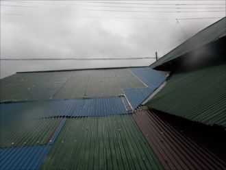 屋根に張られていたのは、ただのカラー波板で値段も安いものでした。お客さんも言われたら信じる他はないのですが、海からも近いのでガルバリウム鋼板製の波板にしました。通常の波板よりも耐用年数が3倍近く、すぐさま錆びてくることは少なく非常に丈夫です。屋根のことですので、雨漏れが生じると屋根の修理だけでは済まなくなってしまい、酷い状態ですと部屋の中まで修理が必要になってしまいます。