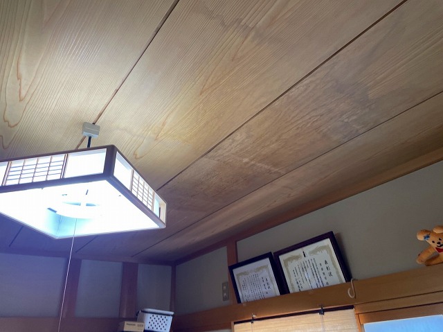 那須塩原市の屋根カバー工事で棟板金を取り付けました。 南面のルーフ貼り付けが終了しました。 最後に残っていた南面で他の場所と同じに、軒先2段目と3段目に雪止めを取り付け、ルーフ貼り付けが終了しました。 ...続きを読む2022/08/3 福山市にて雨染み跡が気になる1階和室広縁の天井板張替え工事