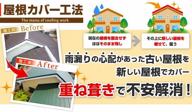 カバー工法に特化したページです現在の屋根を新しい屋根で覆う、二重屋根になるのが屋根カバー工法当店のカバー工法事例阿見町の屋根リフォームは防災瓦を使用しました当店のカバー工法事例取手市での屋根カバー工法で生まれた遮熱効果と遮音性能 ...続きを読む2022/08/19 大阪狭山市 過去の台風被害を受けたままの瓦屋根一部葺き直し工事