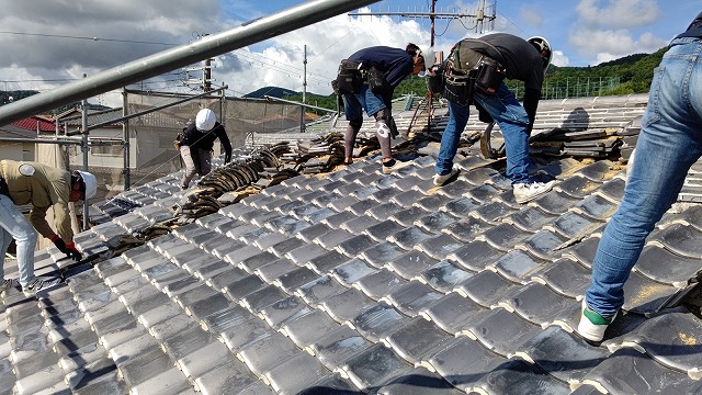 海田町の皆さん、こんにちは!街の屋根やさん広島呉店です。今回は長年の雨漏りを、気にはしていたものの、住居ではない為に後回しになってしまったお客様からのお問い合わせでした。数年前の豪雨により、雨漏りを発見したのが最初でしたが、どうやらその他の傷んだ箇所のリフォーム工事と相まり、また工事会社の繫忙 ...続きを読む2022/07/26 姫路市内で古い屋根瓦から新しい屋根瓦へ葺き替え工事開始!