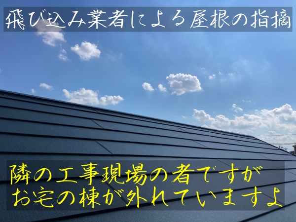 弊社OB様宅に飛び込み業者 お宅の屋根の棟が外れていますよ 名古屋市西区のOB様よりお問い合わせがありました。先日、ご自宅に飛び込み業者が来られたそうです話を詳しく伺うと『隣の工事をしている者ですが工事をするので挨拶に ...続きを読む2022/07/26 甲府市の2階建て住宅で雨漏れが発生し、現地調査に伺いました!!