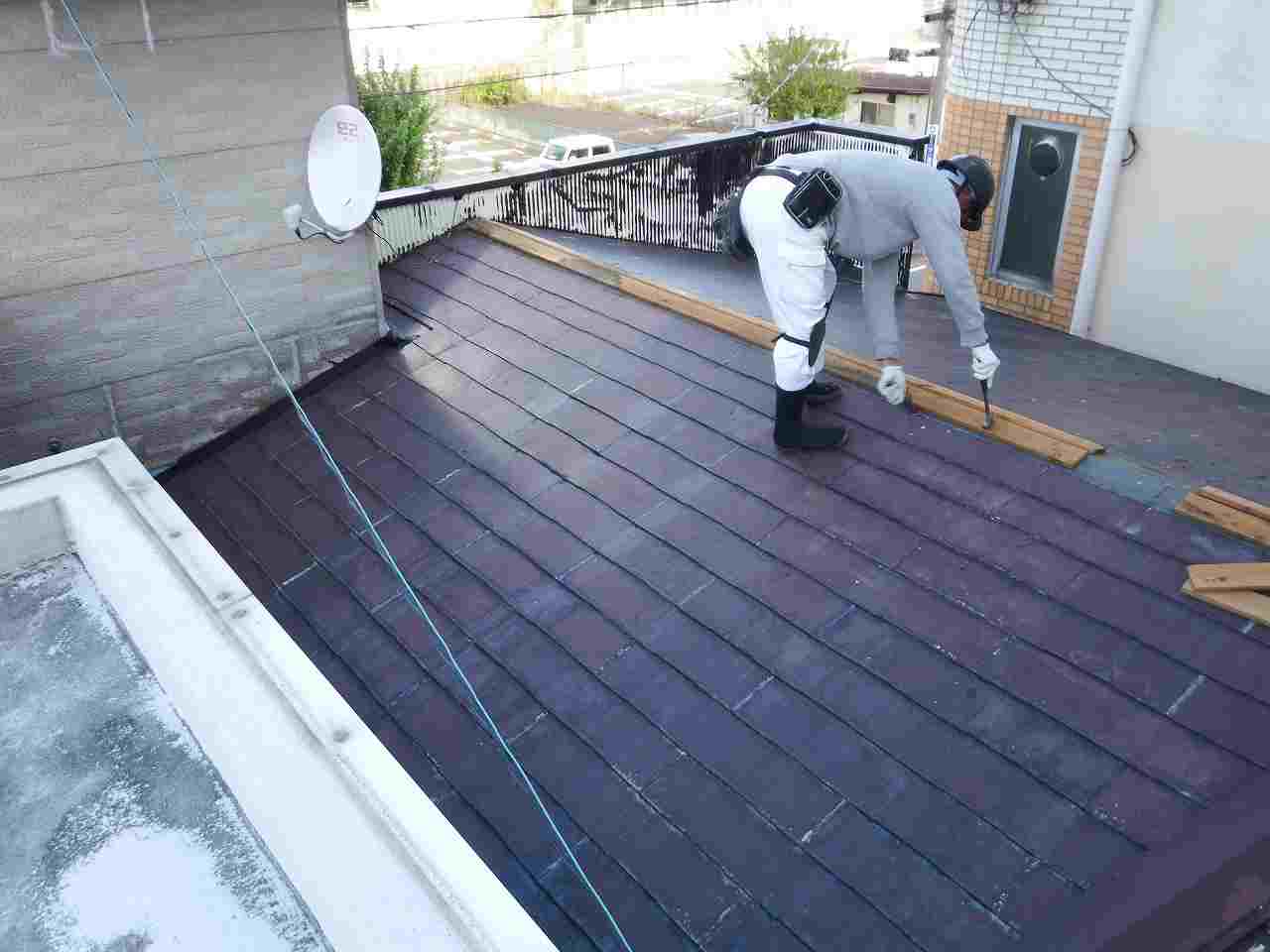 岐阜市にお住いのお客様から「屋根から雨漏りするから一度見てほしい」とご相談をいただきました。 本日点検にお伺いしましたお宅はスレート、カラーベスト屋根です。 全体的に劣化が激しく苔が発生していました。屋根全体の傷みも多く確認できました。 ...続きを読む2022/07/24 奈良県三郷町で雨漏りの屋根の応急処置、本工事まで雨漏りを止めます