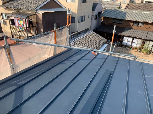 奈良市で新築の片流れ屋根に立平工法で、雨水がスムーズに流れるように施工しています。前回は、立平工法でガルバリウム鋼板を設置しました。今回は、板金を設置していきます。屋根の完成まであと少しです。では工事の様子をご覧下さい!! 前回は立平工法嵌合式でガルバリウム鋼板を設置 ...続きを読む2022/07/24 大垣市にて古くなったカラートタン瓦棒屋根の現場調査に行ってメンテナンスを提案