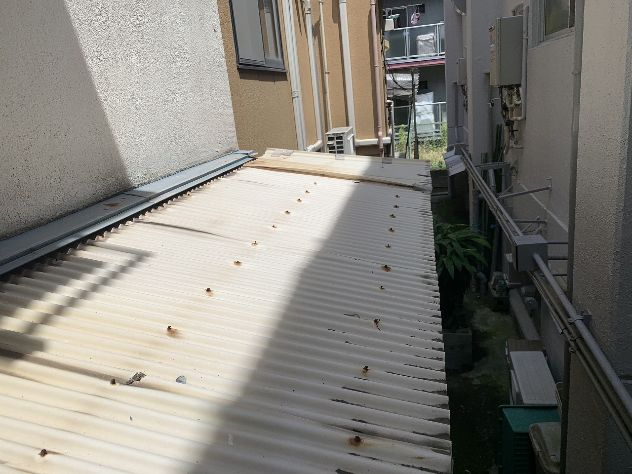 こんにちは!街の屋根屋さん大阪吹田店です(*^^*)今回、吹田市にお住まいの方から、「風が吹くたび、波板屋根がバタバタと音を立ててうるさい。1階と2階の波板屋根を交換したいと考えているのですが、一度見に来てもらえませんか。」とのご相談をいただきました。既存の波板屋根を拝見したところ、波板自体の劣化はもちろんで ...続きを読む2022/07/15 鹿嶋市で老朽化した平屋住宅屋根の色褪せしたカラーベストは全塗装工事で安心