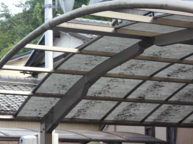 大垣市にお住いのお客様より「カーポートの屋根が一枚飛び散ってありません。補修お願いします」とのご相談をいただきました。早速調査に伺いました。屋根はアクリル板でした。カーポートはアルミ製で屋根と柱の簡単な車庫でした。築年数がかなり経過していてメンテナンスがされていませんでした。カーポートは屋根全体が色褪せて汚れ ...続きを読む2022/07/29 甲府市の景色のいい場所にある住宅で雨樋の交換工事と外壁塗装工事のご依頼をいただきました!