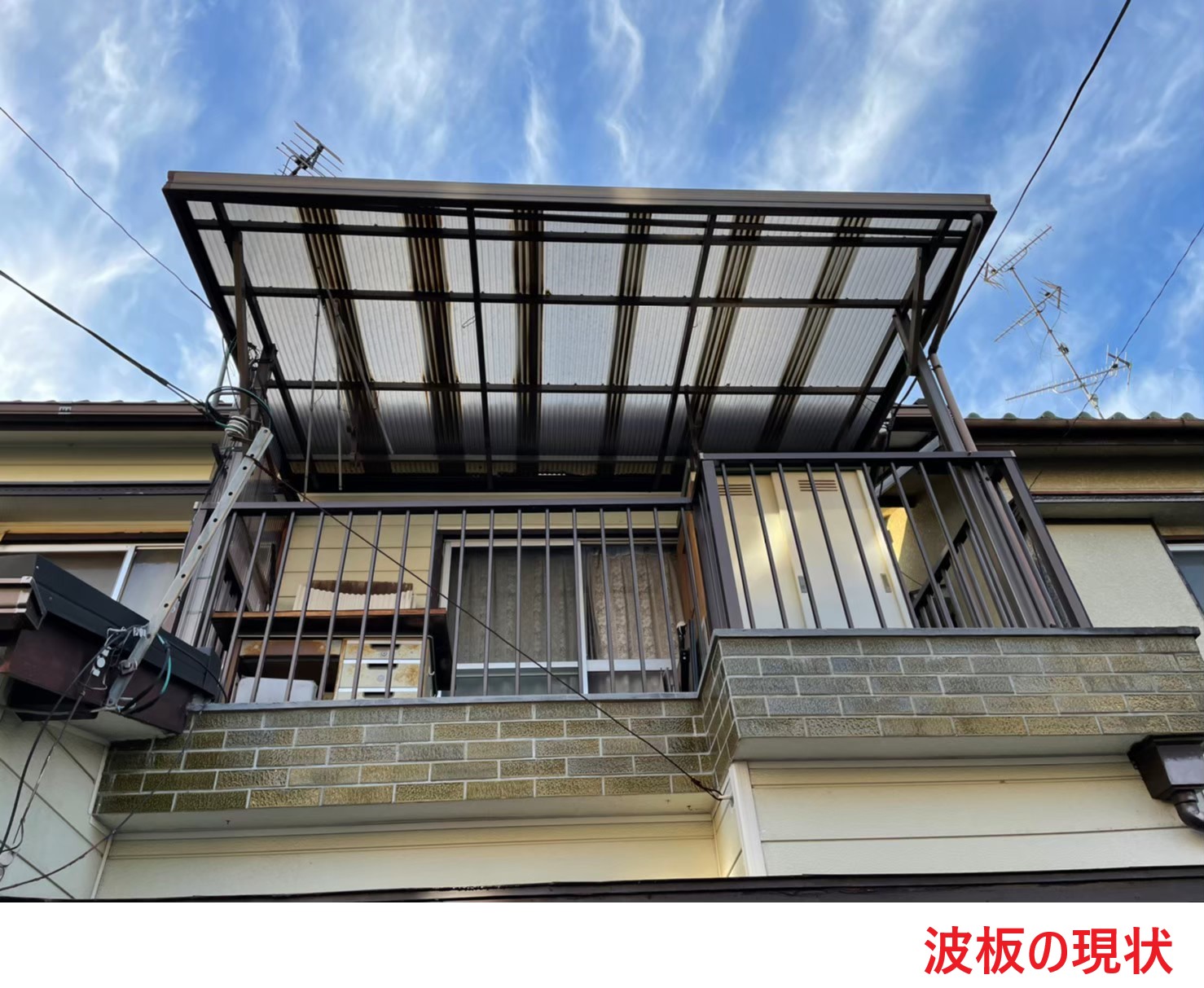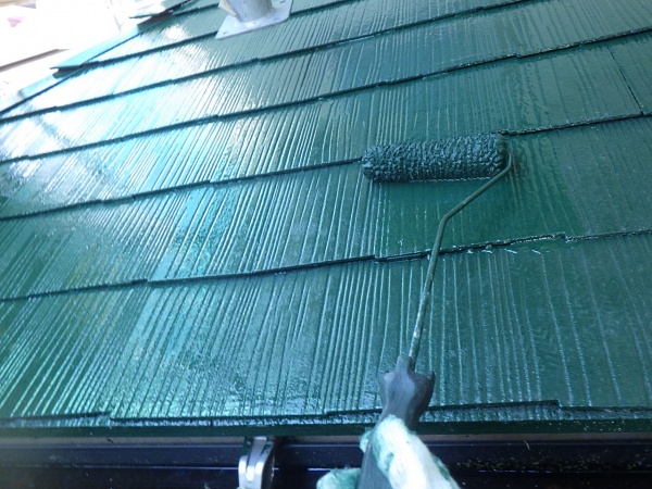 大田原市でスレート屋根塗装と外壁目地打ち替え工事が完工しました。 下屋根のスレート屋根上塗り中です。 下屋根に掛かる中段までシーリング打ち替えが終了しましたので上塗り塗装をしていきます。 今回は外壁を塗装しませんので、外壁との取り合いを刷毛で見切りながら、スレート屋根部分をローラーで仕上げてい ...続きを読む2022/07/13 近江八幡市で強風の際に音が鳴る波板の交換依頼と火災保険が使える?