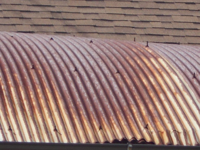 2022/07/29  大垣市にて倉庫の屋根金属製波トタンの現場調査に行くと錆が発生していました
