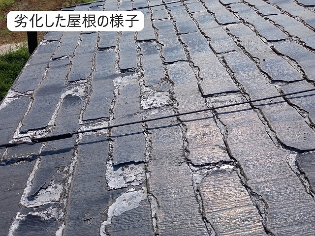 小美玉市にお住いの皆様こんにちは、街の屋根やさんつくば稲敷店です。あたりまえではありますが・・・暑いですね~☼私どももそうですが、皆様も熱中症にはお気をつけくださいね(;'∀')本日は前回の続きでもあります、漆喰の詰め直し工事のご報告です!っとその前に現場調査時、工事1日目のおさらいです(*^- ...続きを読む2022/07/5 茅ヶ崎市赤羽根にて化粧スレート屋根を点検、塗膜と屋根材が傷んでいたため塗装はできない状態でした