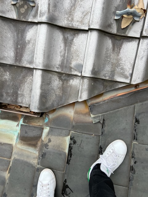 屋根に登ったらスレートがずれていた! この写真をご覧ください。「これは非常に危ない。。!」(*´Д`*)このズレているスレートのまわりを歩いたら今にも落ちてきそうな状態ですね。屋根に登りここに行きつくまでに他のヶ所でもスレートがズレ抜け落ちそう ...続きを読む2022/07/4 兵庫県でいつもお世話になっているオーナーさんからの雨漏り現地調査 依頼!
