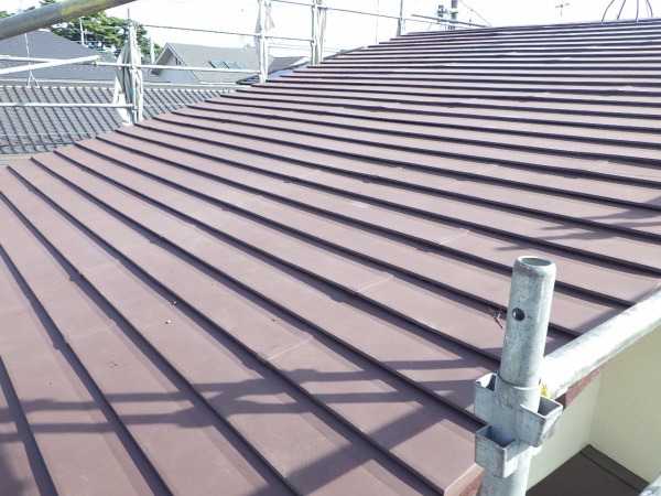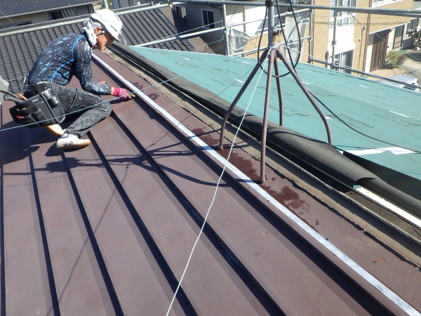 斑鳩町で築30年の瓦屋根の葺き替え工事を行っています。大屋根の葺き替えは完了し、庇と下屋根の葺き替えを施工途中です。前回は防水紙の設置をご紹介しました。取り合い部分の立ち上げを十分にとり雨漏りしない施工です。今回は下屋根はカラーベストを、庇には立平を設置しました。では工事の様子をご覧下さい!! ...続きを読む2022/07/1 坂戸市で屋根塗装 高圧洗浄・下塗り・中塗り・上塗りと三回塗装