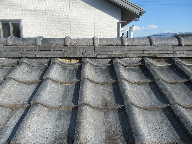 大垣市にお住いのお客様より「カーポートの屋根の塩ビ波板が飛び散って穴が開いています。アルミの下地も曲がっています」とのご相談をいただきました。早速調査に伺いました。屋根は昔からよく使われていた塩ビ波板でした。かなり劣化していました。塩ビ波板は紫外線や熱で変形変色しやすく表面が硬化して割れやすくなる素材です。 ...続きを読む2022/06/30 岐阜市で棟瓦のビスが浮いている瓦屋根の点検を行ってきました