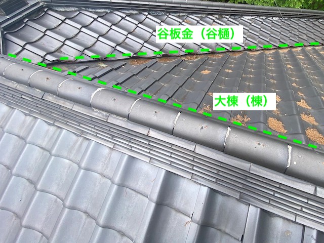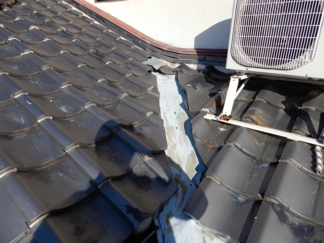 上牧町の瓦屋根の様子です。雨漏りしているとので、調査したところ、この谷板金の劣化によるものだと分かりました。屋根の中でも雨漏りが発生しやすいのが「谷」です。そんな谷を雨漏れから守る為に取り付けられるのが「谷板金(たにばんきん)」です。谷板金というのは、屋根の形状によって左右の瓦の間に谷が出来ま ...続きを読む2022/07/15 大阪市都島区 見積もり用の足場で35万円?割れた屋根の点検