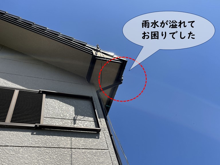 今回は岐阜市で漆喰の詰め直し工事を行ってきました。屋根の頂上には棟という部位があり、瓦屋根の場合棟には瓦が積んでありその下に漆喰が詰められています。漆喰は大体10年~15年程で表面にひび割れや漆喰の剥離などの不具合が発生してしまいます。その様な不具合を放置しておくとそこから水が侵入し雨漏りに ...続きを読む2022/07/15 和歌山市で雨樋の落ち口に落ち葉や土が詰まって雨水が溢れていました