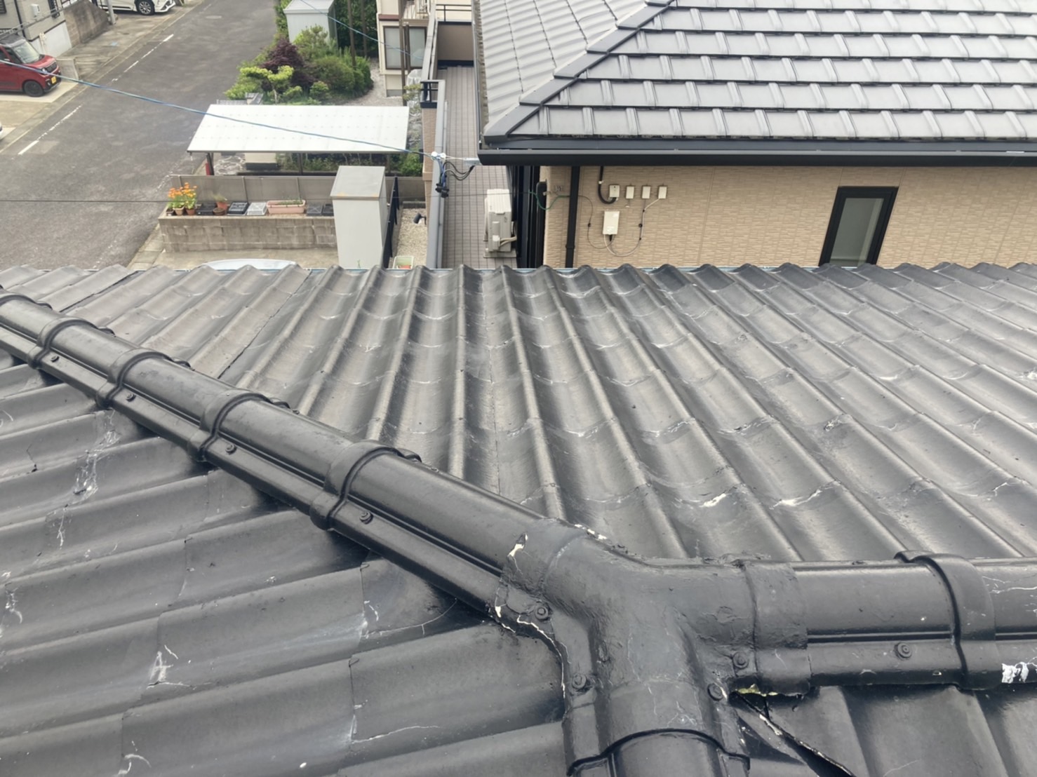 こんにちは、「街の屋根やさん西条・新居浜店」の丹 基徳(たん もとのり)です。四国中央市にお住いのお客様宅の雨樋の一部が突風「やまじ風」により破損したので雨樋修理することになりました。今回は破損した軒樋の端部であるエンドキャップと集水器を新しいものに取り換える雨樋修理の様子をご紹介します。前回の棟板金の取り換 ...続きを読む2022/06/14 四国中央市でスレート屋根をファインシリコンベストで屋根塗装