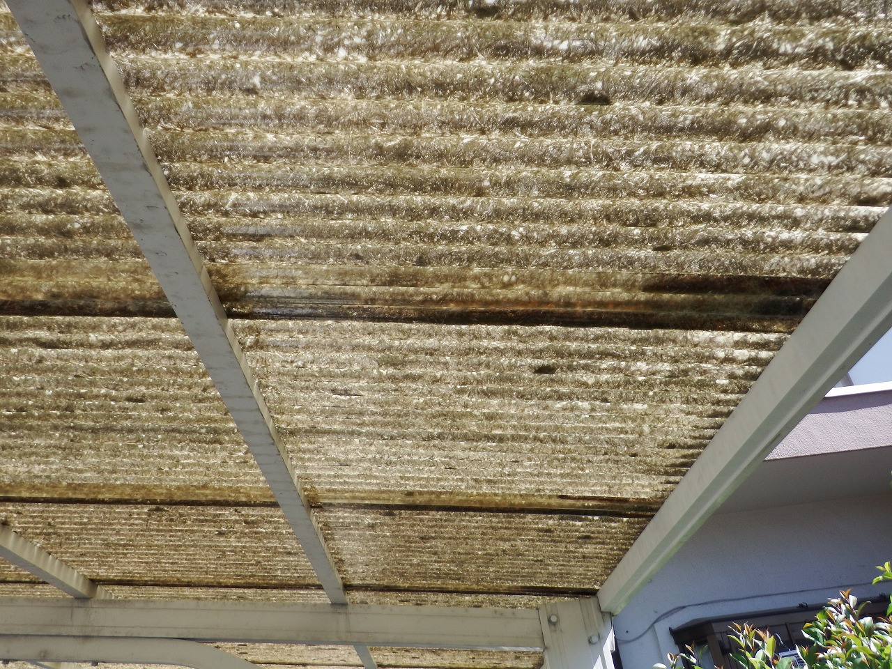 奈良市でカーポートの波板屋根を張り替えたいので見積りしてほしいとのご依頼がありました。無料点検にお伺いしたところ、波板屋根はカーポートを含めて3か所ありました。お客様のご依頼はカーポートの波板屋根の張り替えのみでしたが、全ての波板がFRP製であることや経年などが同条件であることなどの説明の上、3か所の波板を全 ...続きを読む2022/06/14 岐阜市にて築20年のカラーベスト屋根が雨漏りしているので現場調査に行ってきました