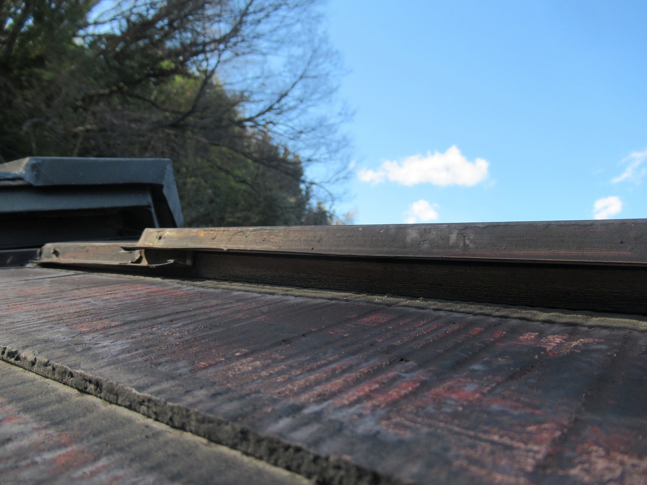 富士川町で強風の影響により、棟板金が飛散してしまいました!棟板金はスレート屋根の頂点部分にしてあるフタのことです。重要な役目を果たしており、スレート材のつなぎ目からの雨が入らないようになっています。棟板金は10 ...続きを読む2022/06/10 富士河口湖町で落ち葉がつまった雨樋を梅雨入り前に清掃しました!