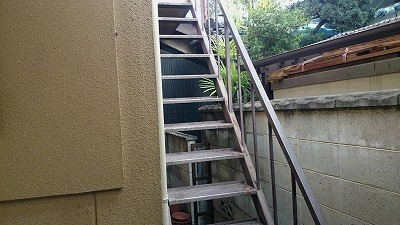 王寺町のテラスの交換のご依頼があり、現場調査に伺いました。波板はかなり変色し、骨組みの鉄部も錆が出ていました。ガラスネット入り塩ビ(塩化ビニール)波板をポリカ波板に張替えさせて頂きます。波板を撤去し、錆止めを塗って塗装してから新しい波板に張り替えます。 ...続きを読む2022/06/24 河合町 外階段がサビてしまっているのでサビ止めを塗ってウレタン塗装しました
