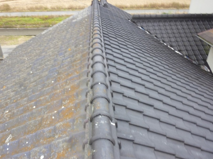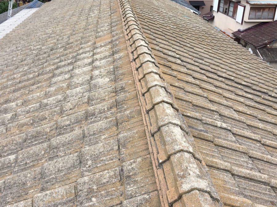 こちらの瓦は釉薬瓦です。陶器瓦とも言います。昔普及していたセメント瓦と比較して耐久性・対候性に優れているのが特徴です。粘土質瓦の一種で、釉薬(うわ薬)をかけて高温で焼き上げた瓦です。瓦表面の釉薬がガラス質になっている為、水が浸透せず、長い年月にわたって美しい状態を保ちます。基本的に塗装等のメンテ ...続きを読む2022/06/8 倉敷市大島で瓦屋根のトップライト部からの雨漏り調査です