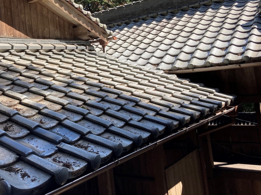 山の畔にあるお寺です。築年数は40年程度らしいです。瓦の上に落ち葉がのっています。雨が降れば落ち葉は軒樋の中に入ることになるでしょう。軒樋の中は落ち葉、泥が溜まっていました。永い年月、清掃はしてないのでしょう。毎日住んでいる住宅でしたら雨水の溢れも気になると思われますが、日ごろ人が住まれてない為 ...続きを読む2022/06/8 岡山市南区で築10年のカラーベスト点検補修を行いました