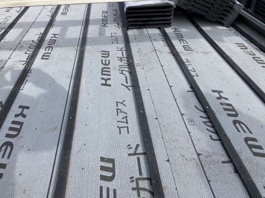 ルーフィング上の黒い資材は樹脂下地「タフモック」です。瓦施工では瓦桟になる物です。ケイミュー社製の純正部材になります。木材と比較して高価ですが腐食に強い部材です。ルーガには周辺部材が多数ありますが、当社では信頼性のある純正部材を使用しています。やはり30年以上の耐久性をもっている屋根材ですので、 ...続きを読む2022/06/8 倉敷市中庄でバルコニー既製品手摺の解体を行いました。