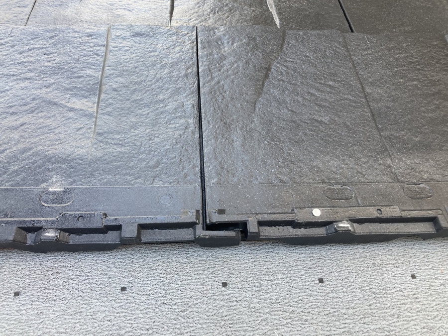 改修前のセメント瓦の状態です。ここまで劣化すると、塗装も不可能です。一度も塗装等のメンテナンスはされてなかったみたいです。雨漏りもしていたようです。 葺き替え工事が完了した屋根です。こちらで使用した屋根材はガルバリウム鋼板製の板金縦葺きで立平葺 ...続きを読む2022/06/8 岡山市北区でケイミュー社「ルーガ鉄平」の施工中です