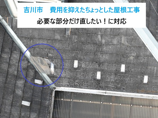 和泉市に工場をお持ちのお客様、こんにちは。街の屋根やさん岸和田店です。 夏場の工場内、暑すぎませんか? 「従業員が汗だくで作業効率が落ちている…」「エアコンをフル稼働しても全然涼しくならない…」「光熱費がどんどん上がって困っている…」 そんなお悩みをお持ちの和泉市の工 ...続きを読む2025/10/10 吉川市 最小限・費用を抑えたちょっとした屋根工事!必要な部分だけ直したい!に対応