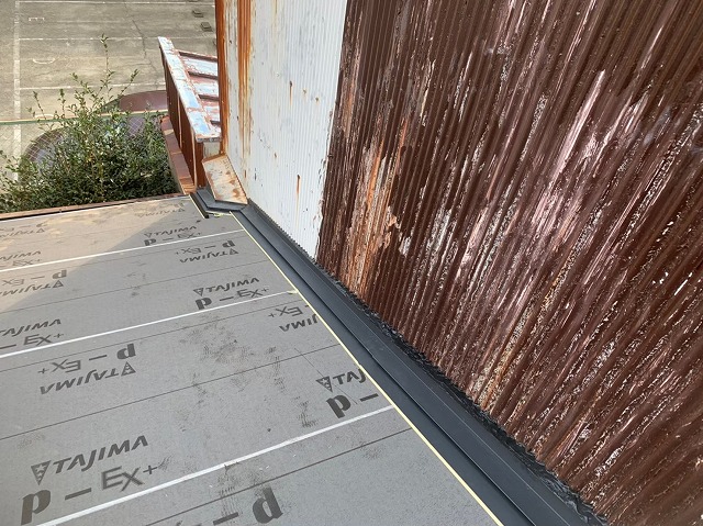 奈良市で築37年の長屋瓦屋根を葺き替え工事でリフォームを行なっています。前回は屋根の下地で防水性を担っている防水紙を設置しました。改質アスファルトルーフィングを使用し高品質なものを選びました。今回は屋根材設置前にケラバ板金やスターターの設置を行います。隣の屋根との取り合い部分にも板金を設置していきます。では、 ...続きを読む2022/05/23 岩出市でズレた瓦を撤去し、垂木・野地板・広小舞・破風板を修理