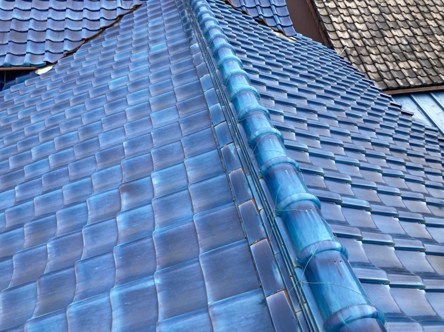 こんにちは、街の屋根やさん堺店です。本日は河内長野市で雨漏りしている瓦屋根の一部葺き直し工事を行った様子をご紹介します。(片棟の取り直しや雨樋の交換も同時進行で行っています。)雨漏りしている場所の瓦を仮撤去してから、既存野地板の上に新しいルーフィングを敷き、瓦屋根を葺き直しました。 ...続きを読む2022/05/9 豊田市にて青色の瓦屋根の無料点検を実施。瓦は定期点検で安心!
