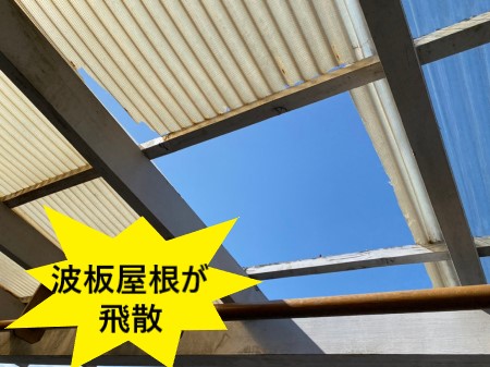 奈良市あやめ池のマンションで屋根が飛んだので、調査して欲しいというご連絡を頂きました。先日の低気圧の日に屋根が飛び、ご自身で補修が困難な為、補修のお見積りのご依頼になります。既存の屋根はポリカ製の波板をカバー工法により設置しており、波板が風災被害で飛んでしまった状態でした。波板を取り付ける前に雨漏りしていたの ...続きを読む2022/05/10 橿原市で風災被害により瓦が落ちたお客様の住宅の点検