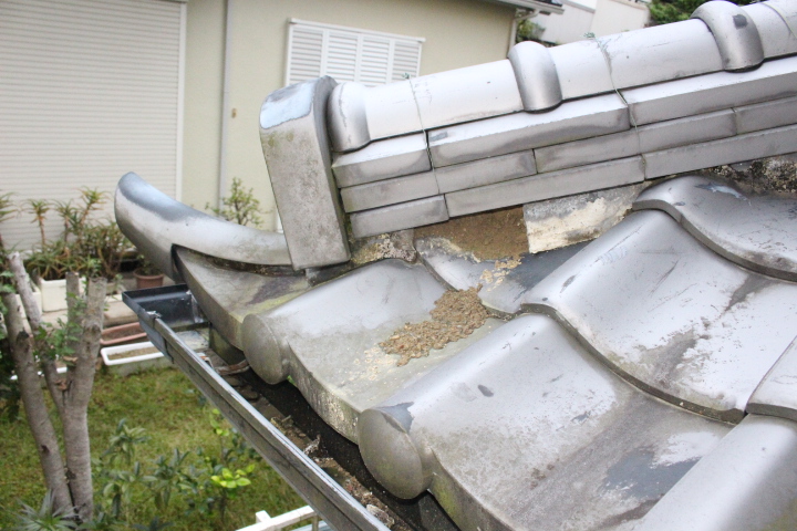 兵庫県川西市のお客様から「屋根瓦の漆喰が落ちてきているので心配です。一度調査して欲しい」とのお電話をいただきました。現場で屋根に上がり調査してみると確かに漆喰が剥がれて来ているところがあり、土が出てきているところもありました。 ...続きを読む2022/05/2 芦屋市 台風被害 屋根から屋根の部材が落ちてきた!