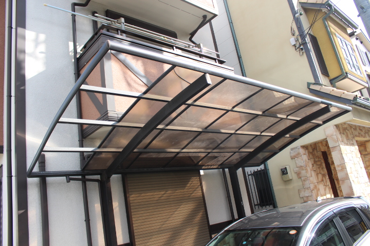 芦屋市のお客様からエレベーター棟の屋上から雨漏りしているので、調査して欲しいとのご相談をいただきました。現場調査で、ハシゴで屋上へ上がってみると、シート防水が劣化して、ジョイント部で防水が切れてきていました。 エレベ ...続きを読む2022/05/2 尼崎市 カーポート屋根ポリカ板 復旧工事