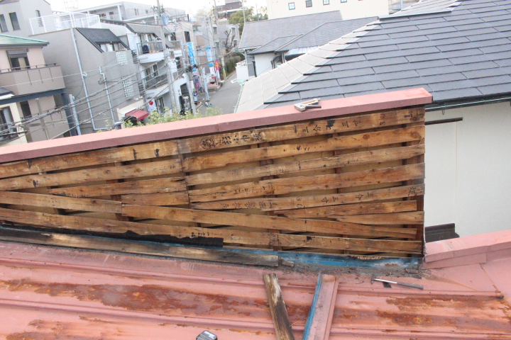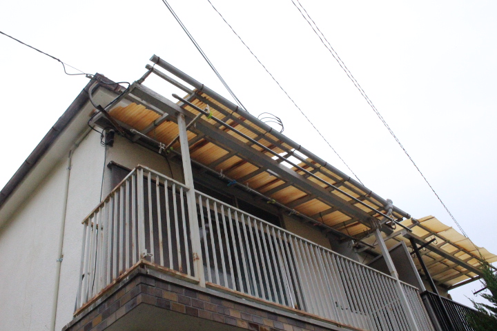 尼崎市のS様から、台風で家のビルの屋上笠木が飛んでしまったようなので、見に来てほしいとのご連絡をいただきました。調査するのに屋上へ上がる手段がありませんでしたので、階下の部屋の窓から、棒の先にカメラを付けリモート操作で屋上の状況を撮影しました。 ...続きを読む2022/05/2 下伊那郡阿智村で屋根カバー工法工事はじまりました
