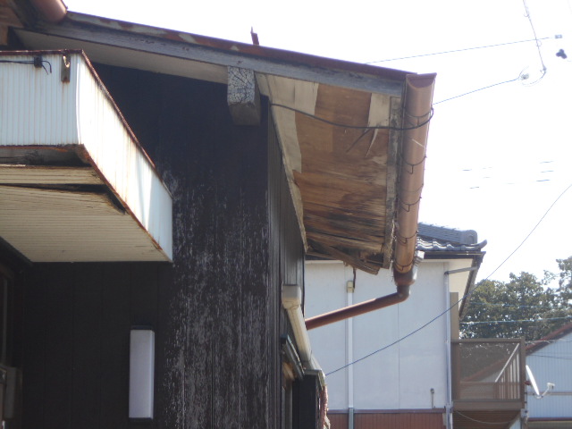 大垣市にお住いのお客様より「屋根がさびてボロボロの状態です。全体が赤さびです。塗装出来ますか」とのご相談をいただきました。早速調査に伺いました。屋根はカラートタン瓦棒屋根でした。築年数がかなり経過していてメンテナンスがされていませんでした。今後の建物の耐久性を考えて塗装工事で塗装工事でお願いしたいとのことでし ...続きを読む2022/04/30 大垣市 軒天ベニヤが剝がれて中の下地が見えています。軒天雨漏り調査
