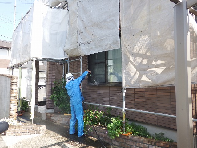 岐阜市にお住まいのお客様邸にて屋根塗装見積調査に行ってきました。今まで一度もメンテナンスをしたことがなく今回が初めて屋根塗装をするそうです。築年数 約20年屋根形状 切妻屋根材 スレート瓦 (カラーベスト)スレートは粘土板岩の薄板を使用した屋根材のことで、スレート瓦とも呼ばれます。カラーベスト ...続きを読む2022/04/30 生駒市で外壁のメンテナンス工事、塗装をする前に養生とシール打ち