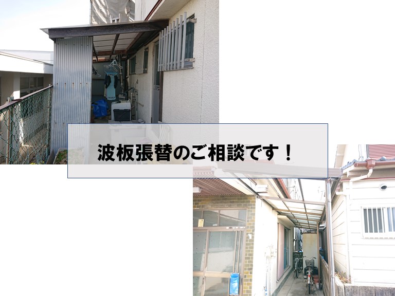 清須市で古く劣化して雨漏りのする波板の張り替え調査に行きました 波板の張り替えは1日で完了します こちらが今回調査に伺った現場の様子です車庫の屋根部分に波板が貼られていました。少し前から車庫の中に雨漏りがある事に気がつ ...続きを読む2022/04/27 和歌山市、近隣で火事が発生!消火の水圧で波板が破損したとご相談