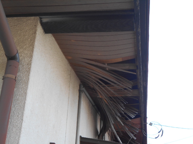 登米市にて、棟包み(棟板金)の一部交換工事を行いました。 こちらのお客様より「強風で棟包みが飛ばされ、庭に落下してしまった」と慌てたご様子でお電話をいただき、早急に現場を調査し、飛ばされた棟板金を新しいものに交換することとなりました。 & ...続きを読む2022/04/23 岐阜市で剥がれた軒天の修理工事をおこないます