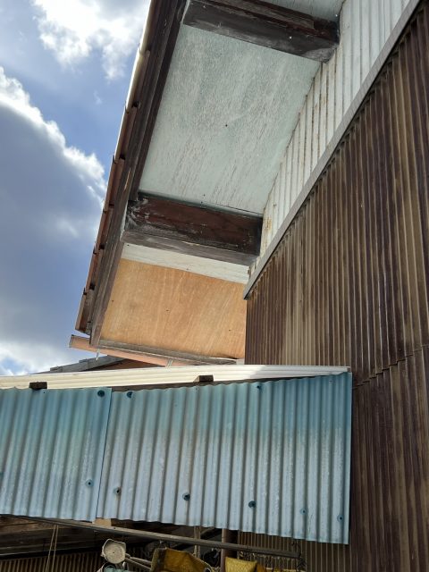 大垣市にお住いのお客様から「軒天が腐食してボロボロになっているので一度見てほしい」というご相談をいただきました。 軒天は屋根の真下部分にある壁の事を言います。 外壁から外側に出ている屋根の裏部分です。軒裏、軒天井とも呼ばれます。この軒天も外壁や屋根同様に雨風や紫外線にさらされていますので劣化し ...続きを読む2022/04/22 岐阜市にて物置の塩ビ波板屋根の現場調査に行くと変形変色して波波の状態でした