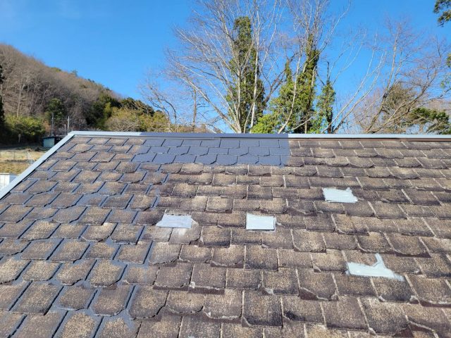 飯田市で行われた割れたスレート屋根の補修と塗装工事が完成しました。 片面ずつで劣化具合が異なったので、急きょ下塗り材を変更しましたが、きれいに仕上がったと思います。 シーラーとプライマーを使い分けた下塗りのようすは前回のブログをご覧ください。 前回のブログはこちら→飯田市で割れたス ...続きを読む2022/04/9 飯田市で割れたスレート屋根の補修と塗装工事を行いました