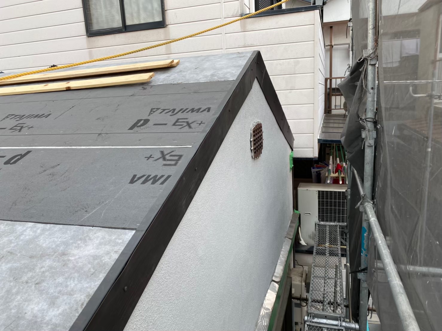 宇都宮市でアクリルシリコン樹脂塗料を使い役物塗装をしました。 1回目の軒天取り合いを塗装しました。 マスキングテープを軒天側に真っすぐに貼り付け、刷毛で塗料を塗り込んでいきます。 ...続きを読む2022/04/8 名古屋市昭和区で高耐久塗料で屋根・外壁の塗装工事!