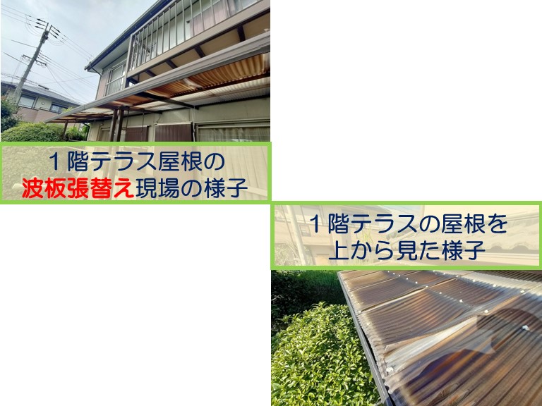 雨漏りが発生し、塗装工事や防水工事など行ってみたけど、なかなか止まらなくてお困りの方はいませんか?泉南市在住U様邸では塗装工事を行っても雨漏りが止まらず、塗装工事をしてくれた業者に雨漏りの相談をしたそうです。すると、屋根の漆喰工事や屋根瓦にコーキングを充填してくれたようですが、そこから雨漏りが ...続きを読む2025/10/9 高石市で1階テラス屋根の波板が劣化で傷み貼替のご相談の現調
