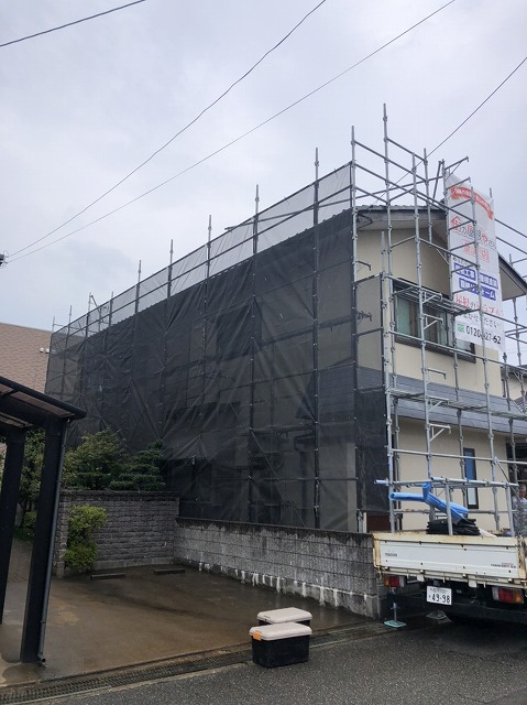 こんにちは!街の屋根やさん金沢店です。かほく市からのお問い合わせで去年の雪により雨樋が歪んだとのご連絡がありお伺いしました。お客様に保険で工事費が出ることをお話したところご存知ではなかったので申請しました。屋根も10年以上メンテナンスしてなく屋根の工事もご検討されていました。雨樋のほうは割れている箇所や歪んで ...続きを読む2022/03/10 金沢市、屋根葺き替え工事、足場組み立て